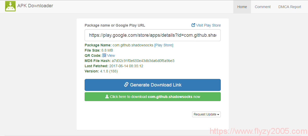 打开APK Downloader,输入你的Google Play APK的链接,点击Generate Download Link,例如我这里以shadowsocks为例,粘贴https://play.google.com…